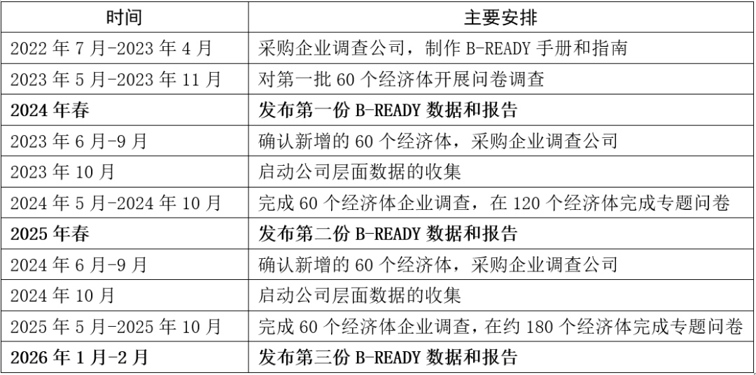 按照全球每三年一個評價周期,B-READY評估公布了近三年的工作計劃,評估安排如表2所示。