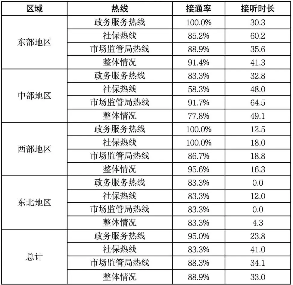 本次調(diào)查選取了20個省的省會城市以及GDP靠前的2個區(qū)/縣,圍繞接通情況、服務(wù)水平和回訪機制3個方面,對政務(wù)服務(wù)、市場監(jiān)管和社保部門對外咨詢熱線開展調(diào)查,了解企業(yè)咨詢業(yè)務(wù)和政策的便利性。
