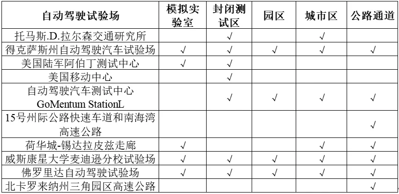 表1 美國自動駕駛試驗場測試場景構(gòu)成
