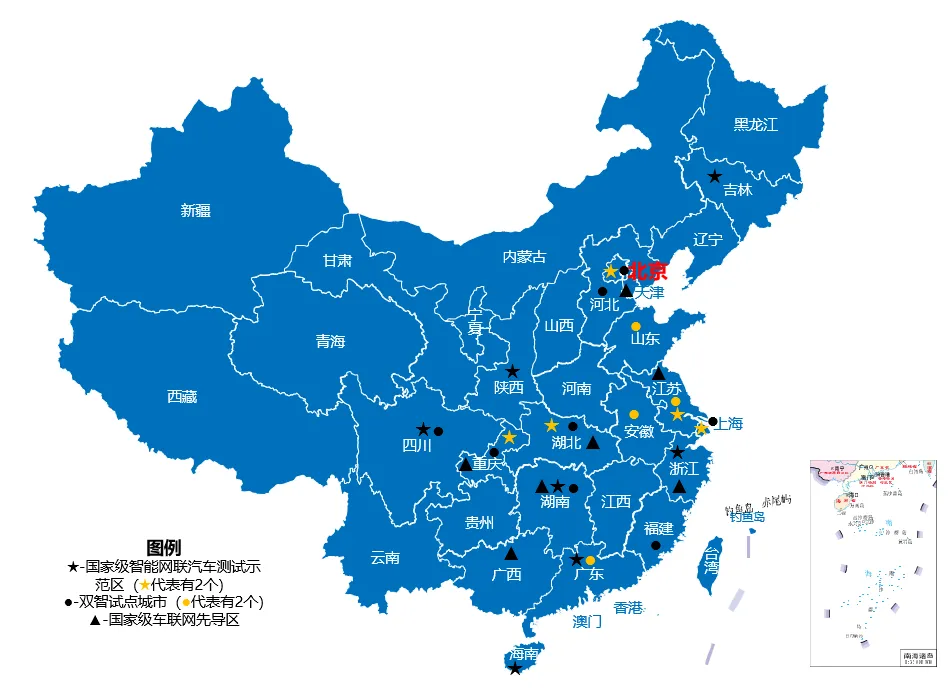 圖1 國內(nèi)智能網(wǎng)聯(lián)汽車自動駕駛試點分布情況