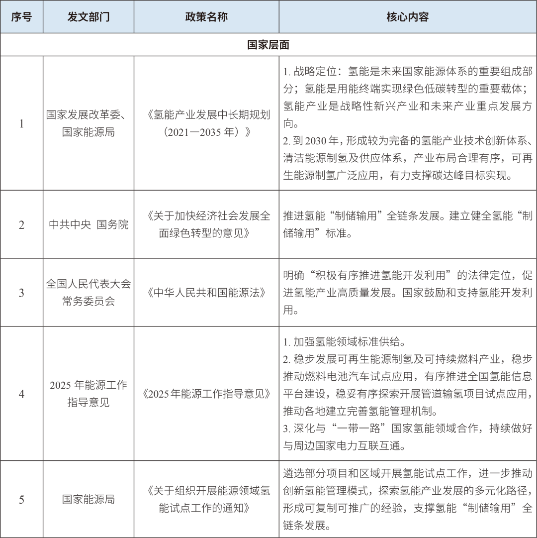 我國對氫能產(chǎn)業(yè)發(fā)展的戰(zhàn)略部署和政策支持體系正在持續(xù)完善,已形成多層次、全方位的產(chǎn)業(yè)促進機制。《氫能產(chǎn)業(yè)發(fā)展中長期規(guī)劃(2021—2035年)》首次從戰(zhàn)略高度明確了氫能的能源屬性和產(chǎn)業(yè)定位。在2024年政府工作報告中,氫能首次以“前沿新興產(chǎn)業(yè)”的定位被納入。2025年1月1日施行的能源法,正式明確了“積極有序推進氫能開發(fā)利用”的法律定位;開始遴選部分項目和區(qū)域開展氫能試點工作,探索氫能產(chǎn)業(yè)發(fā)展的多元化路徑。