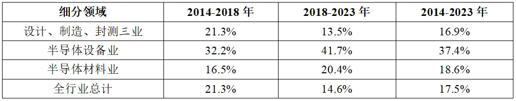 表3 2014-2023年我國集成電路支撐業(yè)銷售收入增速變化情況