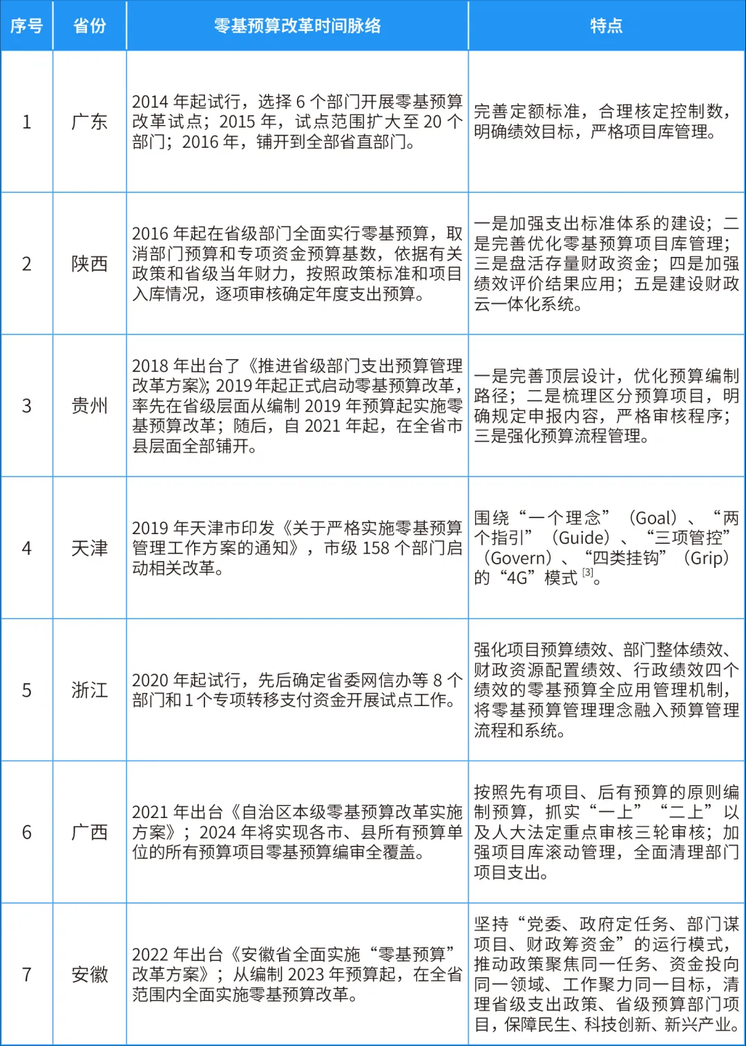 隨著我國財政體制改革的不斷推進,2014年《中華人民共和國預算法》頒布,為加快建立和完善現代財政制度提供了強有力支持,零基預算理念再次受到重視。廣東、陜西、上海等地以“統籌兼顧、勤儉節約、量力而行、講求績效和收支平衡”的原則為基本遵循,開展了新一輪零基預算探索,將改革重心聚焦于部門公用經費標準的合理確定以及項目庫的建設與完善等方面。2021年3月,《國務院關于進一步深化預算管理制度改革的意見》明確“積極運用零基預算理念,打破支出固化僵化格局,合理確定支出預算規模”的要求,再次強調未來預算管理制度改革中零基預算的重要性。各地通過在預算編制環節減少支出、優化支出結構,為國家重大戰略任務和基本民生提供財力保障。2024年7月,黨的二十屆三中全會進一步提出“健全預算制度,加強財政資源和預算統籌,深化零基預算改革”。隨后,財政部選定了中國氣象局等16個部門作為試點,研究探索以零基預算理念為引導、提升部門預算科學管理水平的改革,為推進零基預算改革的深化開啟頂層路線設計的探索。