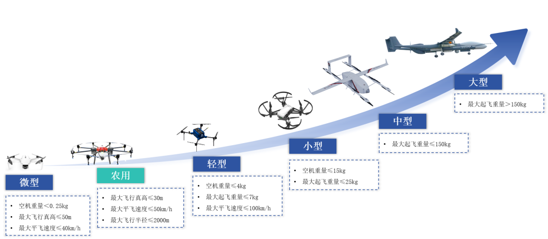 我國無人機(jī)管理基本形成“農(nóng)業(yè)、微輕型豁免、小中大型嚴(yán)格”的分層體系。根據(jù)《無人駕駛航空器飛行管理暫行條例》規(guī)定,無人機(jī)被劃分為微型、輕型、小型、中型和大型五個類別。其中,微型、輕型無人機(jī)由于其體積小、重量輕,主要用于娛樂和拍攝等輕量級應(yīng)用,無需取得操控員執(zhí)照,同時(shí),從事常規(guī)農(nóng)用無人駕駛航空器作業(yè)飛行活動的人員也無需取得操控員執(zhí)照,但應(yīng)當(dāng)由農(nóng)用無人駕駛航空器系統(tǒng)生產(chǎn)者按照國務(wù)院民用航空、農(nóng)業(yè)農(nóng)村主管部門規(guī)定的內(nèi)容進(jìn)行培訓(xùn)和考核,合格后取得操作證書。