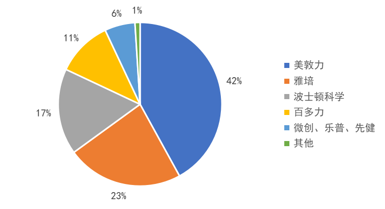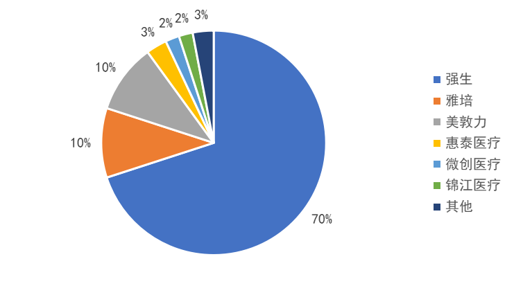 腦血管介入器械(又稱神經介入器械)是指治療中樞神經系統(tǒng)血管疾病的微創(chuàng)醫(yī)療器械。美敦力作為全球腦血管介入器械行業(yè)的引領者,進入中國市場20余年,以其全球領先的高技術產品占據(jù)國內60%市場份額。而國內品牌如微創(chuàng)神通、心瑋醫(yī)療、沛嘉醫(yī)療、歸創(chuàng)通橋等多以生產微導管類、微導絲類等通路類產品為主。