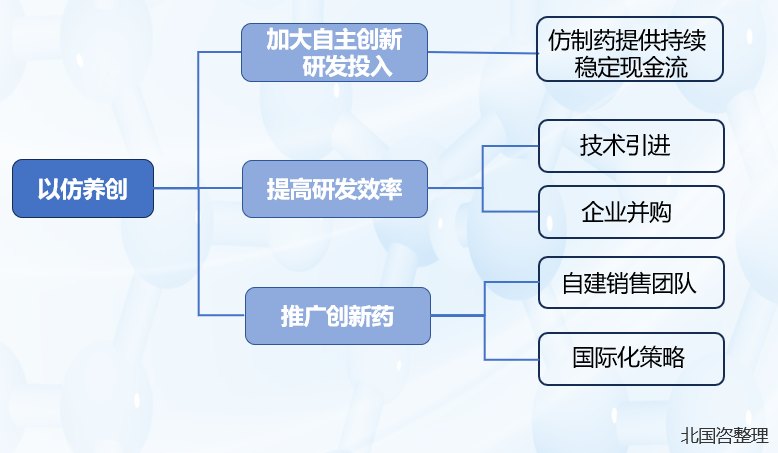 通過對恒瑞和武田發展歷程的分析,可以看出傳統的仿制藥企業想要實現向自主創新的發展模式轉型,并非短時間內可以一蹴而就的,而是需要資本、技術甚至市場穩定的積累??傮w來說,“以仿養創”的轉型升級之路要注意三個關鍵策略: 第一,構建穩健的盈利能力。轉型初期嚴守傳統業務,做好做大市場份額大、競爭優勢明顯的仿制藥產品,只有實現可觀的利潤積累,才能支持大量且持續的研發費用支出。 第二,保持持續的創新能力。一方面,堅持長期主義,持續聚焦創新,建立豐富的研發管線,才可為創新藥物持續上市提供儲備。另一方面,通過技術引進和企業并購等方式,提升研發效率,保持研發能力的領先地位。 第三,向外開拓國際化市場。單一本土市場已無法完全滿足我國創新藥企的發展需求。在國內仿制藥銷售渠道和銷售團隊的基礎上,需要積極拓展海外市場、參與全球競爭,借力與合作中加快全球化步伐,獲取更多資源和資金。 作者: 趙瑞鑫、鄧潔、蘭國威