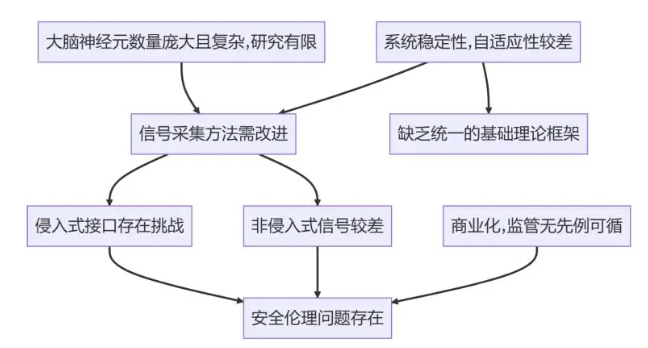 技術上仍有諸多局限性。BCI系統(tǒng)在信號采集、識別精度、處理速度、系統(tǒng)穩(wěn)定性和自適應性方面仍存在不足。大腦的神經(jīng)元結構極為復雜,對大腦工作機制和反饋刺激的研究還相對有限。人機交互界面操作復雜、訓練周期長,針對不同患者的定制化研究難題亟待攻克。研發(fā)成本高昂、開發(fā)周期長,技術成熟度和產(chǎn)品化仍有較長距離。