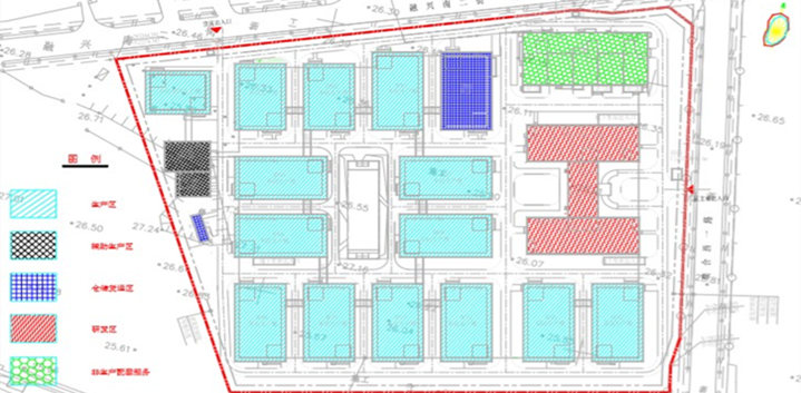 該項目規劃總用地82980.5平方米,總建筑面積218532.74平方米,其中地下建筑面積87000.91平方米,地上建筑面積131531.83平方米。建設內容包括綜合研發樓、符合GMP條件的中試生產車間、GMP車間、倉庫、其他配套設施及道路綠化工程等。